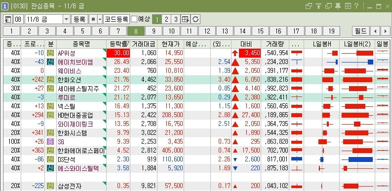 | 24년 11월7일 목 관심종목 (14) | 2024.11.07 |
